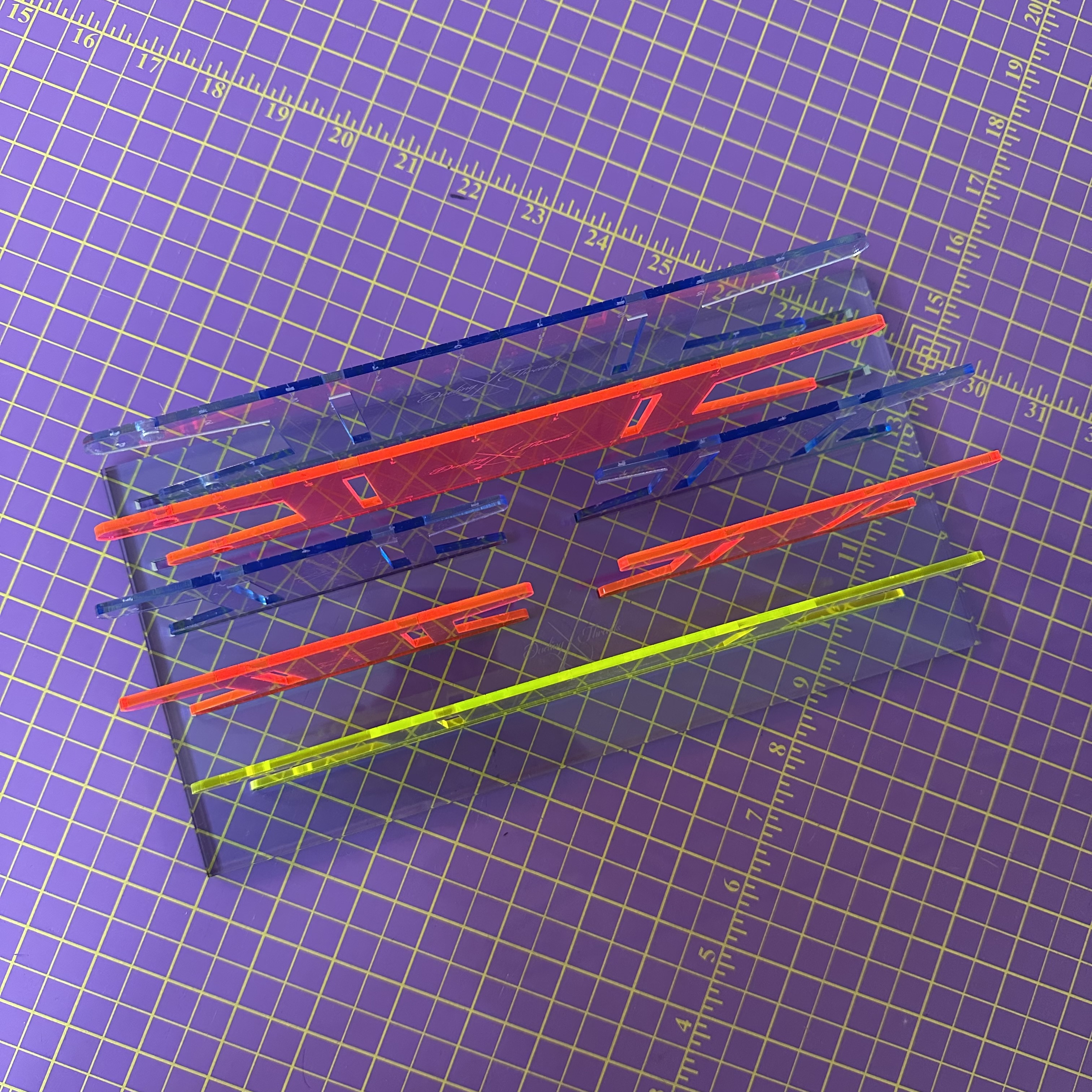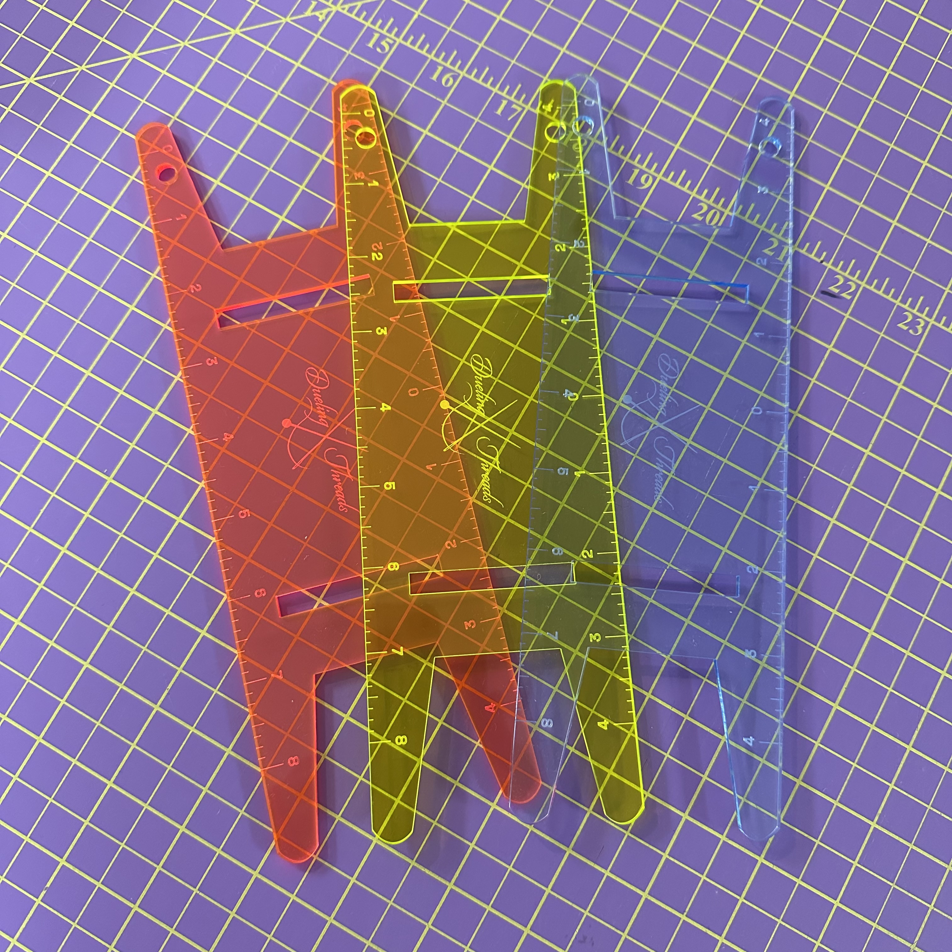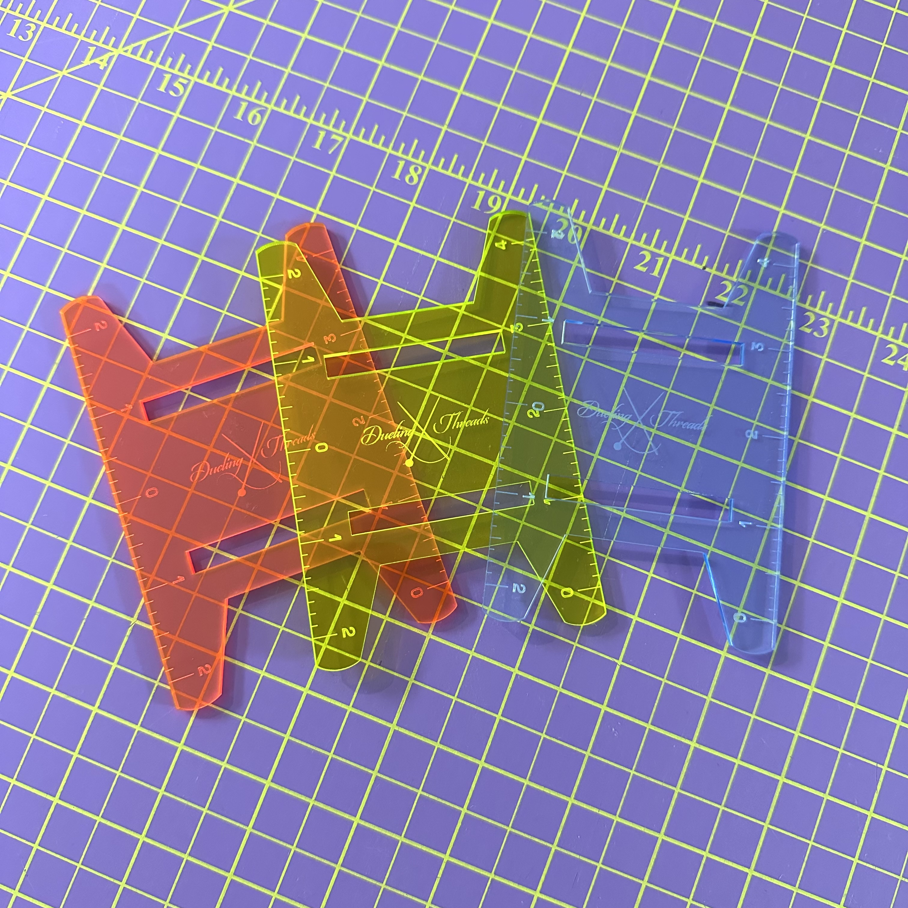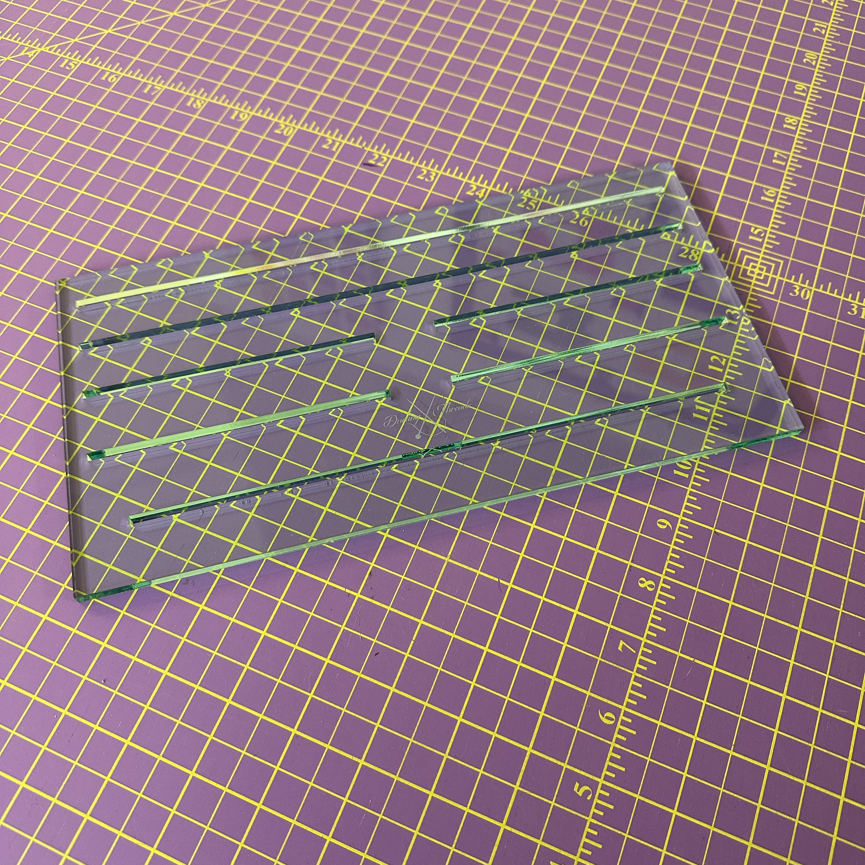 Meet your new sewing sidekick: the Binding Hive™, a sleek, sturdy organizer designed to keep your binding reels neat, visible, and ready for action. Crafted from durable 1/2″ acrylic, this drawer-friendly base features dual slots to hold two sizes of my signature Ruler Reels—custom laser-engraved binding spools that double as cutting tools.
